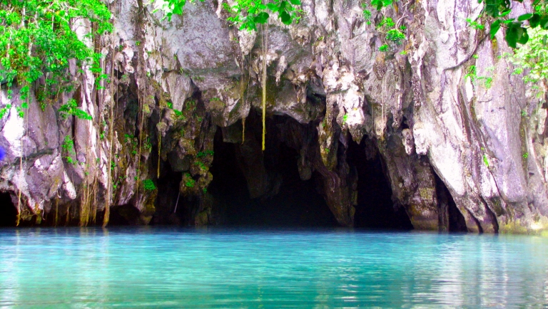 Puerto Princesa is the capital of the popular Palawan island, and a short distance from the city is the Puerto Princesa Subterranean River National Park; reputably the longest underground river in the world. The park has the familiar limestone karst mountain and turquoise water landscape associated with the Philippines. The cave itself includes major formations of stalactites and stalagmites, and several large chambers.